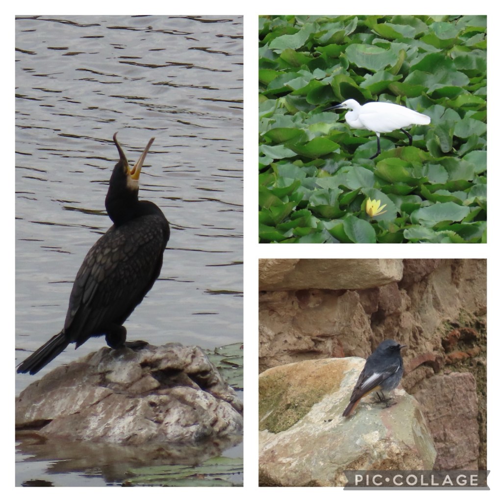 Some of the wildlife spotted during our stroll along the Guadiana river – Bottom left: Cormorant having a yawn; Bottom Middle: Egret; Bottom Right: Black Start (never seen one of these before…)