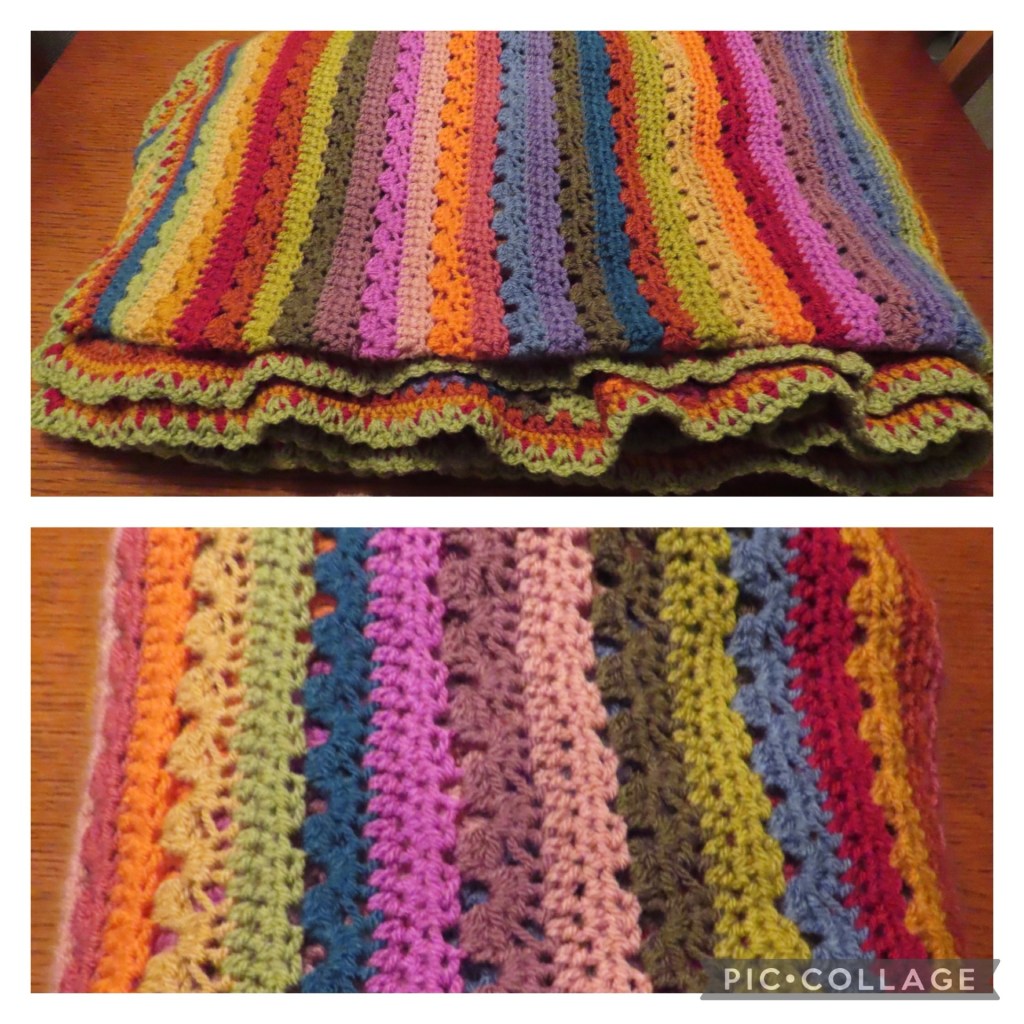 In January, I started my crocheting journey with a simple scarf which went ok… I then decided I would try something just as simple but on a larger scale… so started (back in February) on a nice, cosy blanket which I just finished – woohoo! Just in time for winter! It might not be completely perfect (or straight for that matter) but it is mine! I made it and I love, love, love it!