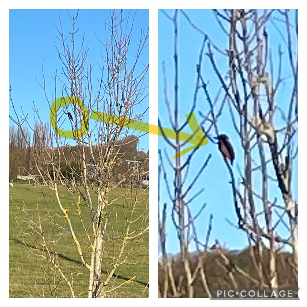 I left Mum just before their lunch was served and decided to take a lone walk along the canal just to get some steps in… was glad I did as, after only saying to Pete the other day how I had never seen a Kingfisher sitting on a branch (well, other than in India that is – in the UK, I’ve only ever seen (and only rarely) a fleeting glance of them zipping up or down the canal… this is usually such a quick flash of blue that it leaves you wondering whether you imagined it!), would you Adam & Eve it, just because Pete wasn’t with me, I saw a Kingfisher fly up the canal towards me and land on a branch of a tree on the opposite bank to where I was walking. Of course, the question is, did I get a semi-professional shot of the Kingfisher? Sadly not as, yet again, I forgot my camera. 😫 I did however, get a shot on my phone – see below where you have the “actual picture” and a zoomed in, edited pic…