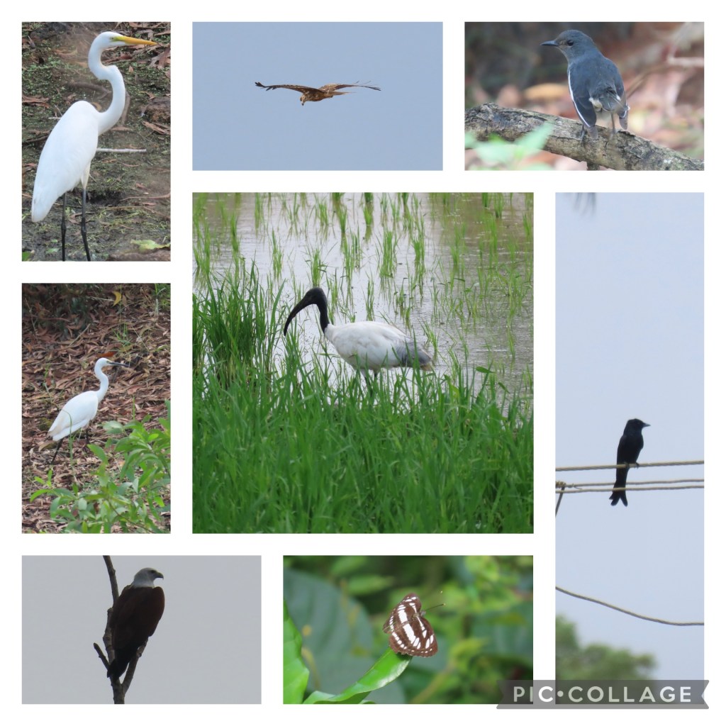 Top Right: Oriental Magpie Robin; Middle: Black-headed Ibis; Bottom Left: Brahminy Kite; Right: Drongo – not sure about the butterfly!