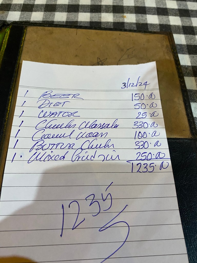 In the evening we ventured down the road and intended to go to the bar where we had our late brunch… however, that looked really busy so we crossed the road to another bar which, in the afternoon, we thought was derelict and not open! 🤣 With the lights on at night, it looked pretty good – so we had our first curry in India and it did not disappoint… butter chicken for me, masala chicken for Pete, Mixed fried rice & a nan bread to share, a coke , beer & bottle of water – all for about £11.50 (1250 R/s) – so the prices haven’t really changed and remain a lot different to the £30-40 we usually spend when at the Indian in Silsden!🤣