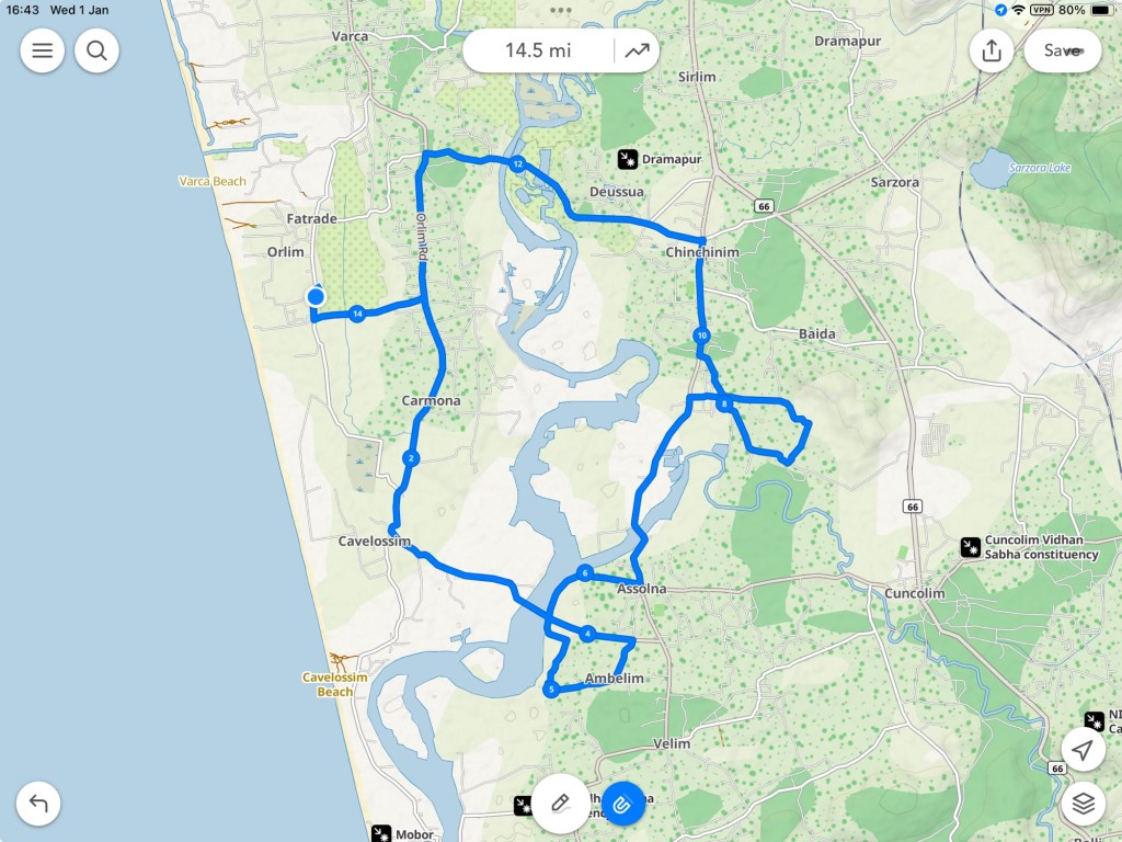We woke late this morning and spent an hour or so reading, catching up on the news etc until going out for a scooter ride… we had already decided we were going to head over to the other side of the river Sal and head North as we’ve not been that way before… it wasn’t far (according to the map below, about 14.5 miles) but it was a lovely drive around and provided some great photo opportunities! With it being New Year’s Day, the roads were relatively quiet too which was nice 😊