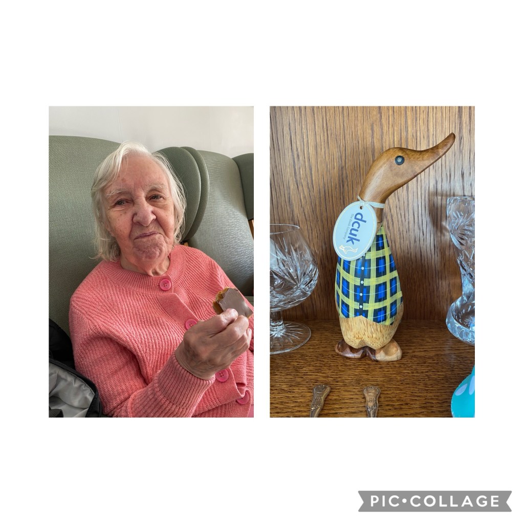 I went to visit Mum on Wednesday (29th) and it was great to see her for a few hours… she enjoyed the goodies I took (millionaire shortbread!). I also received a nice surprise pressie from my brother Andy – see below – to welcome us home and also mark the start of the Six Nations Rugby… It’s a dcuk Duck called Doddie (after Doddie Weir)!