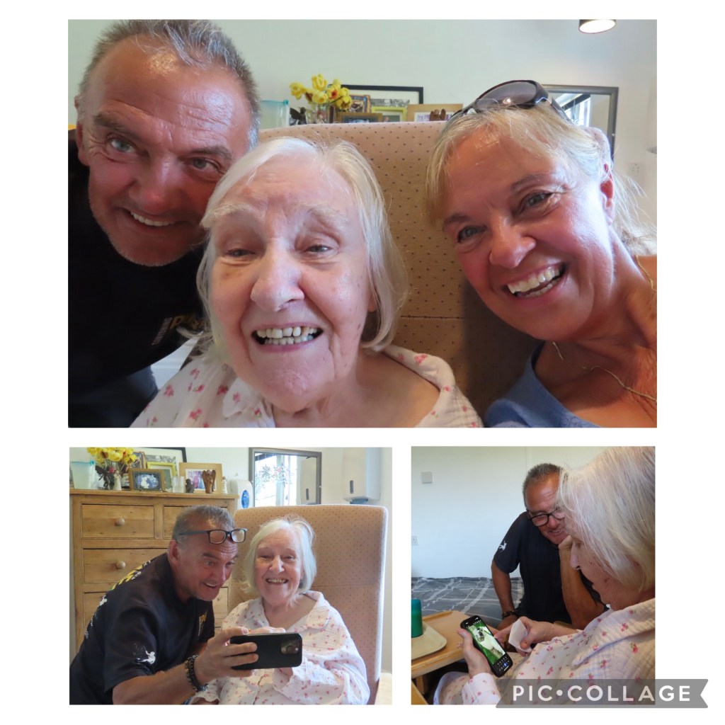 After a lovely BBQ on Saturday night (a reasonably early one (for us!) as Andy was knackered!) and a good night’s sleep, Andy and I went off to see Mum about 10.30 on Sunday morning only to find that she’d had a lie-in as it was her shower day and she was still in bed! Lazy cow! She hadn’t even had any breakfast 🤣 Anyway, the staff went and made sure she was presentable and then we were able to sit with her in her room whilst she had her breakfast (followed by quite a number of jelly babies that we’d brought her – mmm… toast & Jam followed by Jelly Babies!). The staff were very accommodating for which we were grateful as it could have turned out to be a wasted visit for Andy if not!